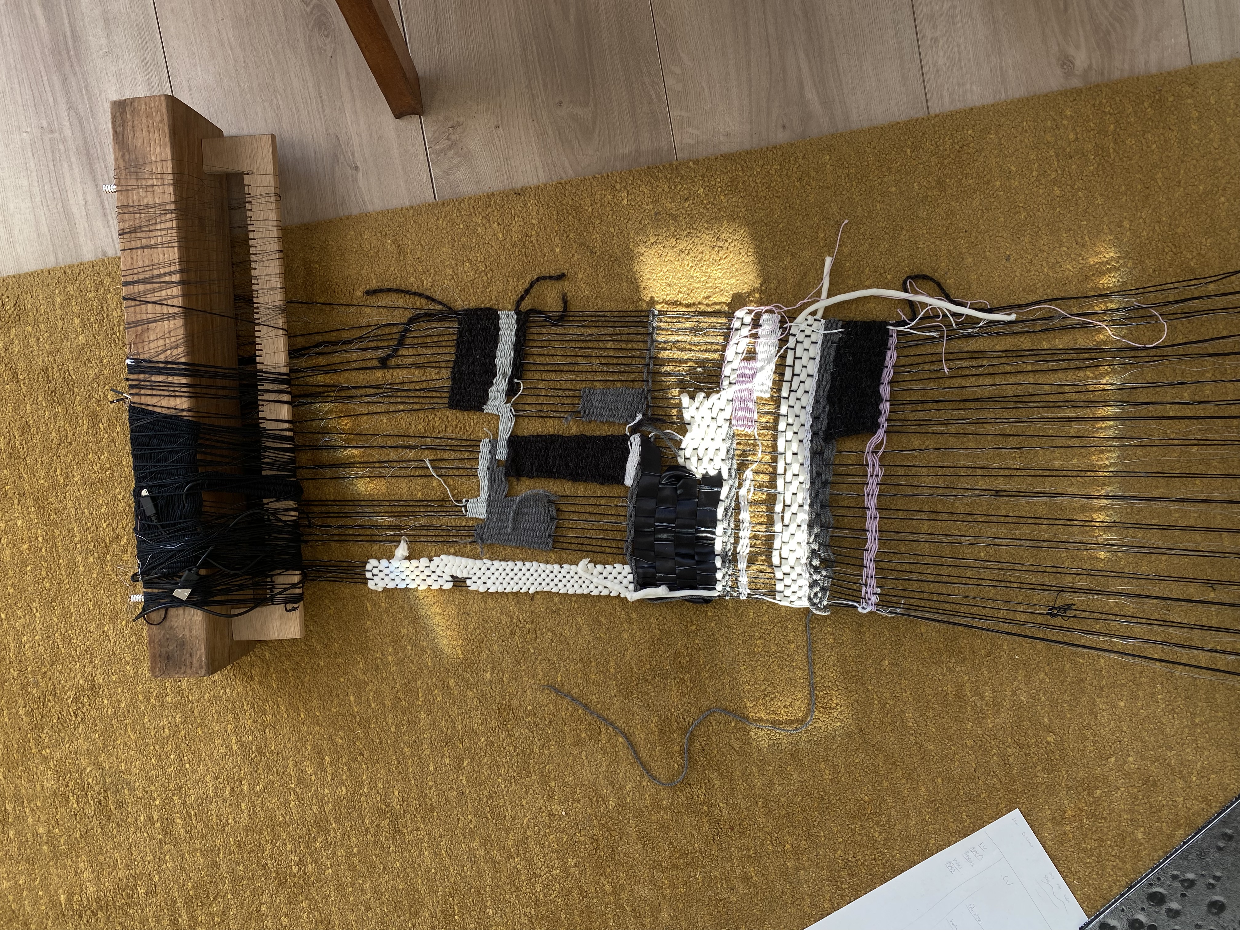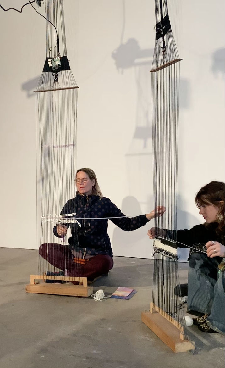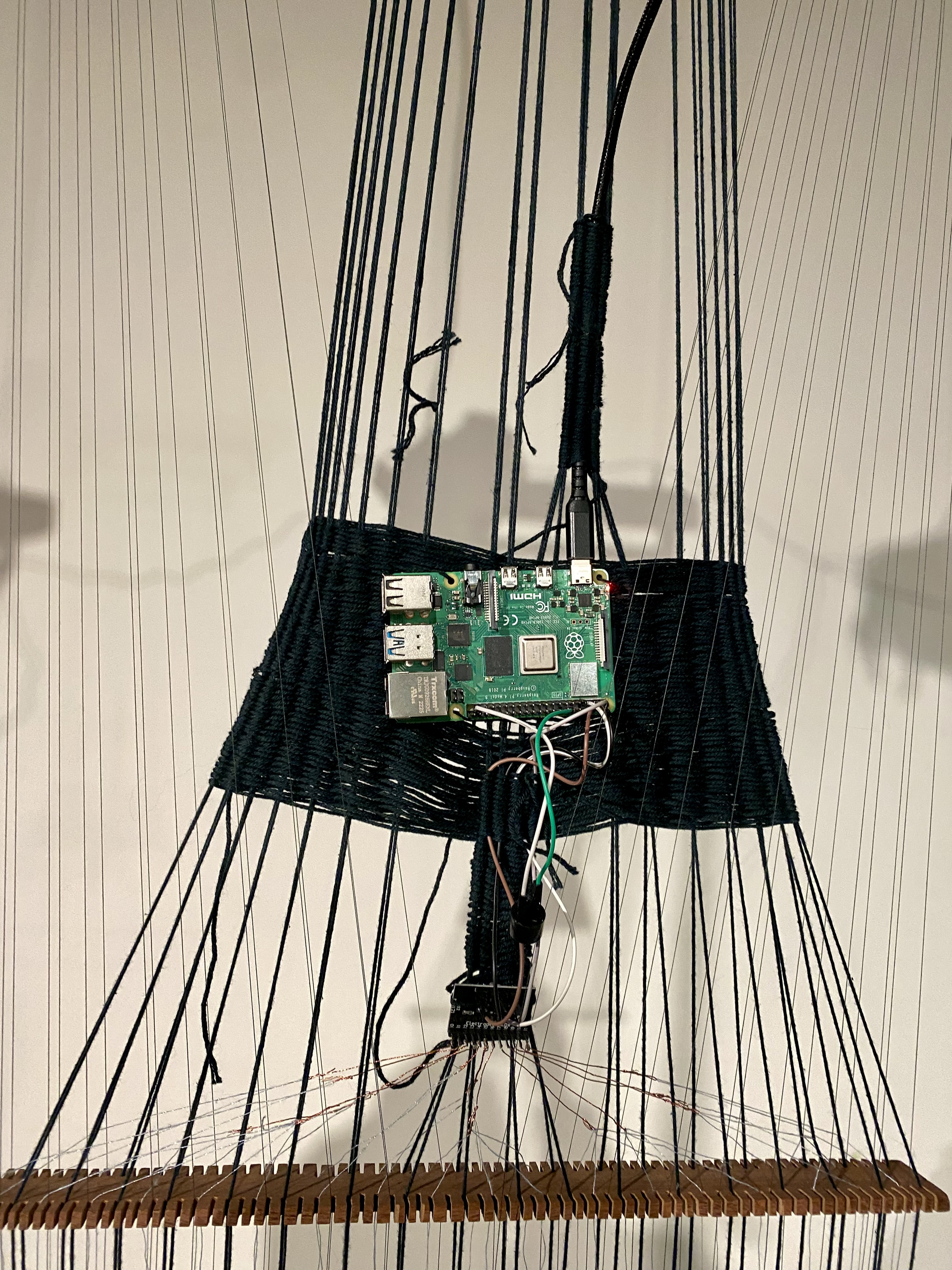 born under thread investigates the relationship between textile-making and computational logic through a network of looms connected to Raspberry Pi microcomputers. Each touch on the conductive yarns generates data that weaves itself into live visual and sonic patterns, approaching computation as an embodied, relational process. At its core, this project aims to pull computation down from the cloud and return it to the collective.